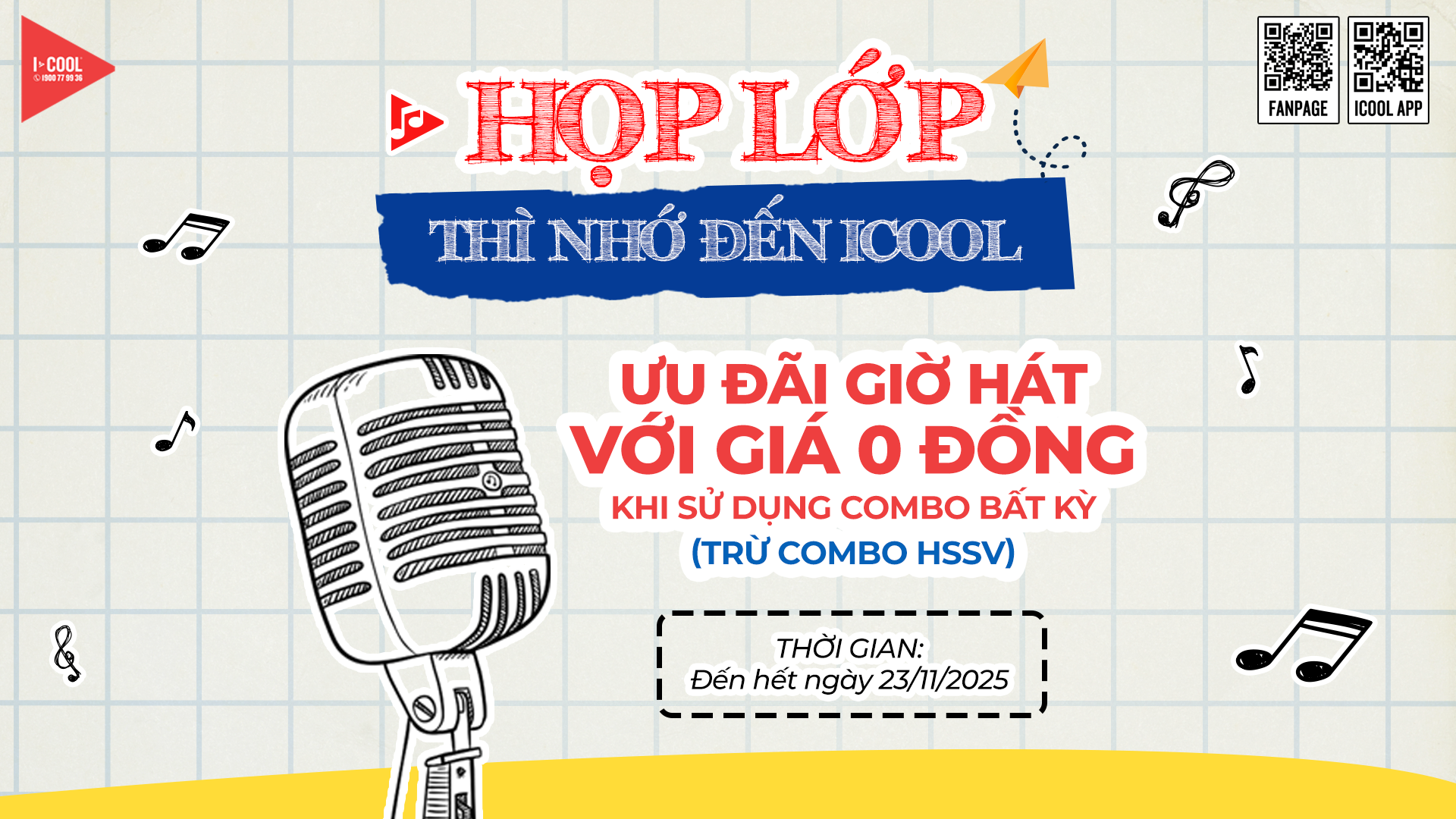 Còn chần chừ gì nữa? Alo ngay cho thầy cô và những người bạn cũ lâu ngày chưa gặp, đến ICOOL để cùng nhau ôn lại kỷ niệm, hát vang những bài ca tri ân và tận hưởng ưu đãi siêu hời từ ICOOL thôi nào!