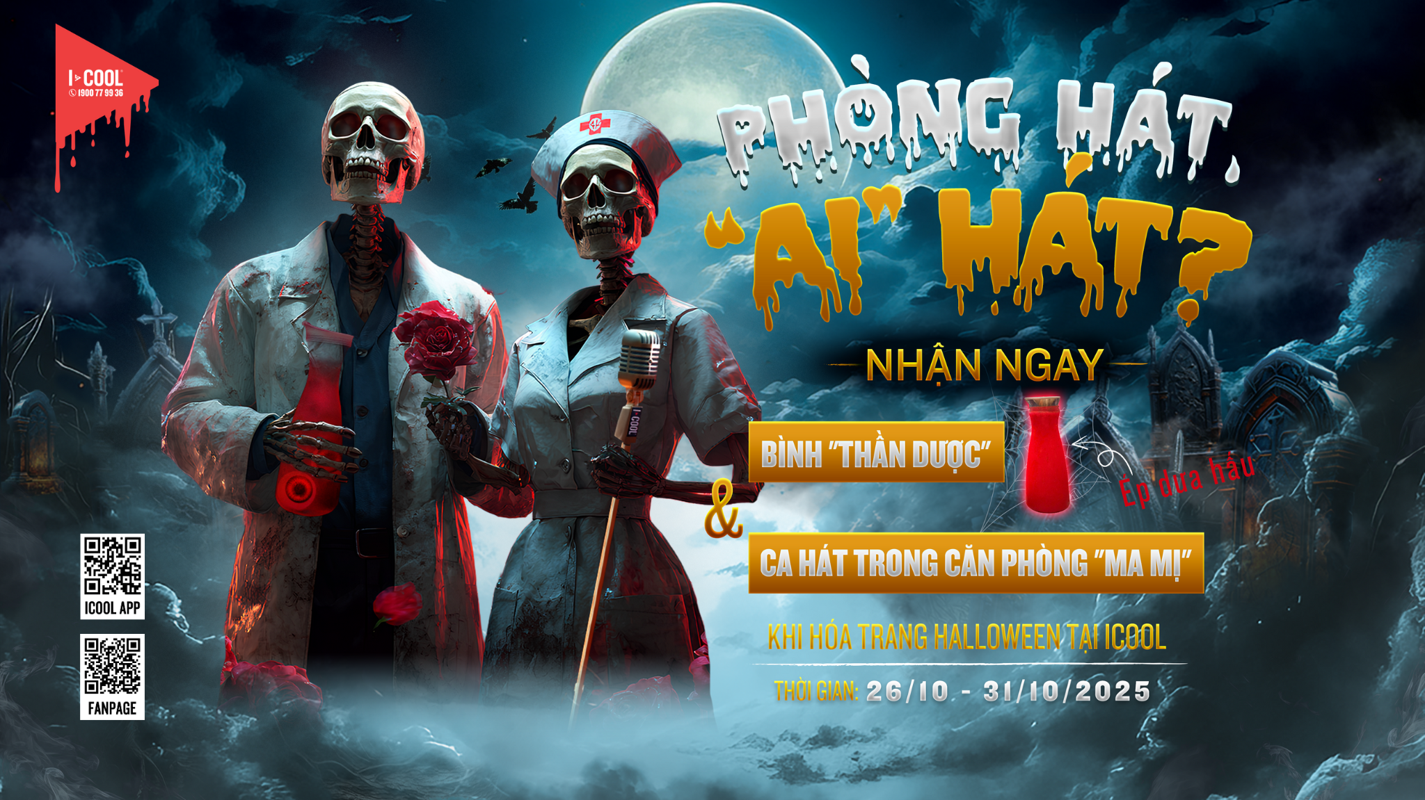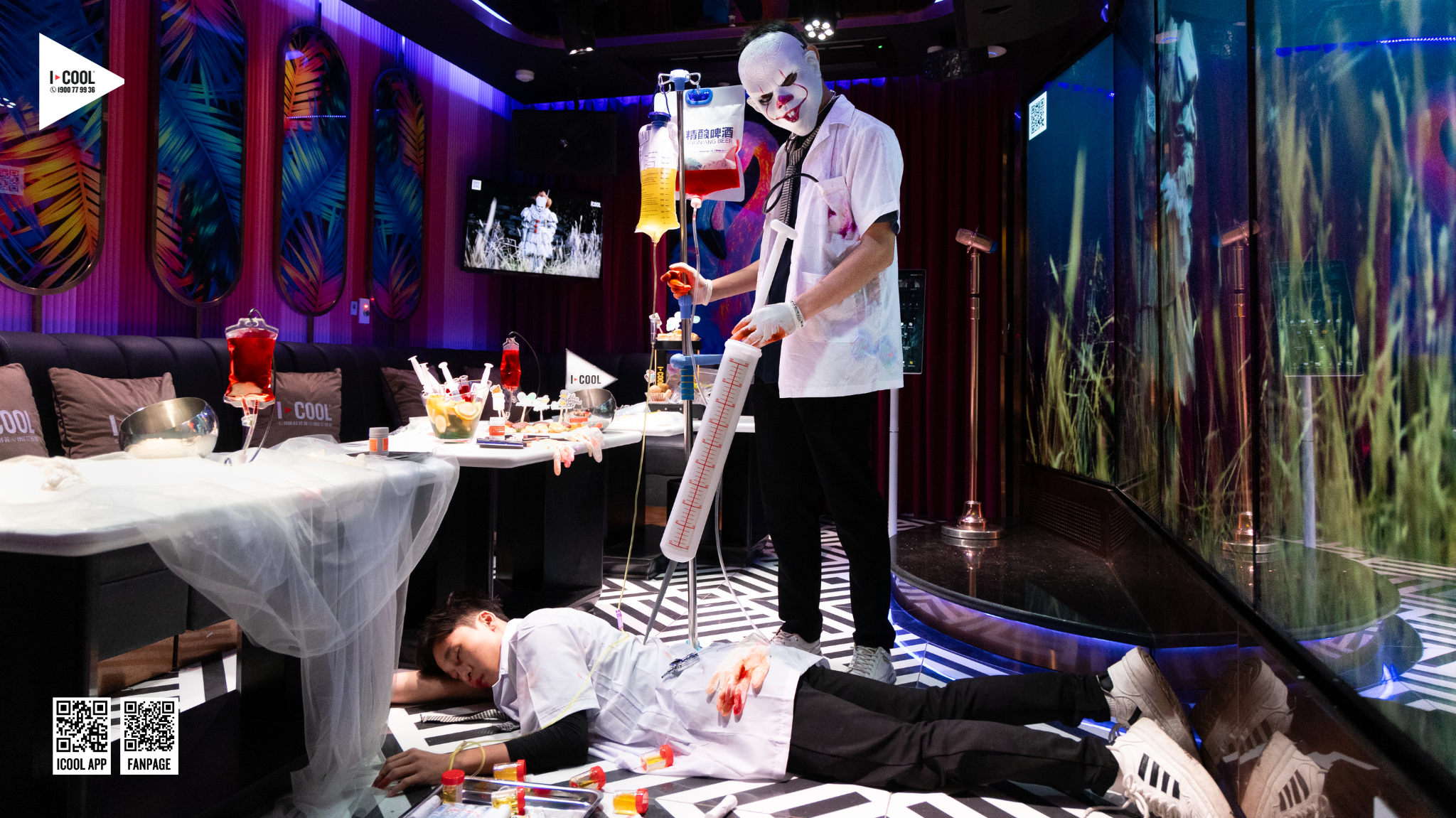 Đặc biệt hơn, mỗi phòng hát tại ICOOL đều sẽ biến thành một “bệnh viện ma quái”, nơi ánh sáng lập lòe, tiếng cười hòa cùng âm thanh vang vọng như lời gọi mời từ thế giới bên kia.