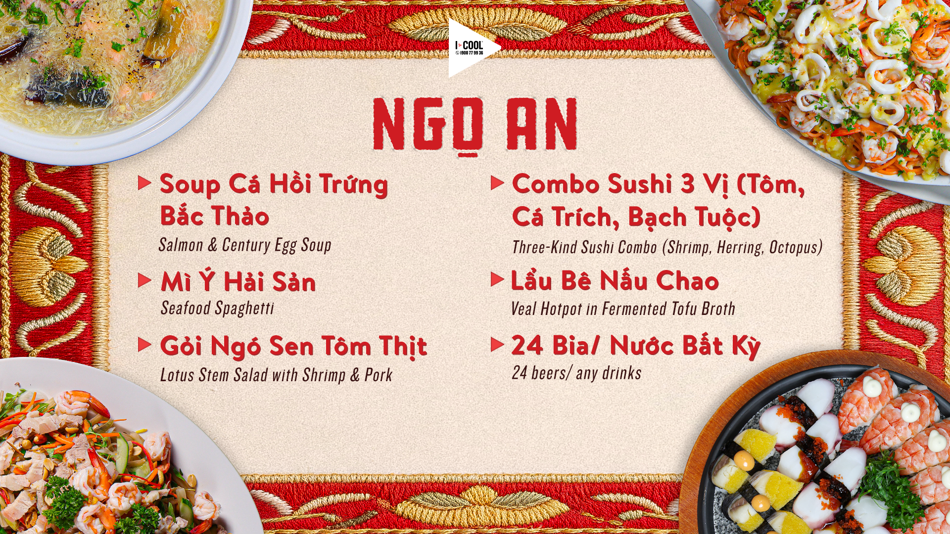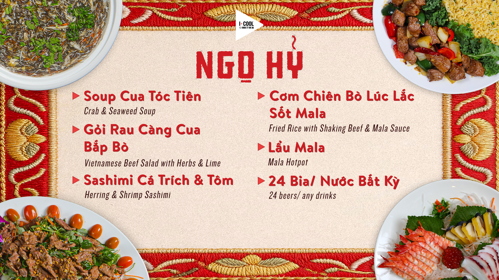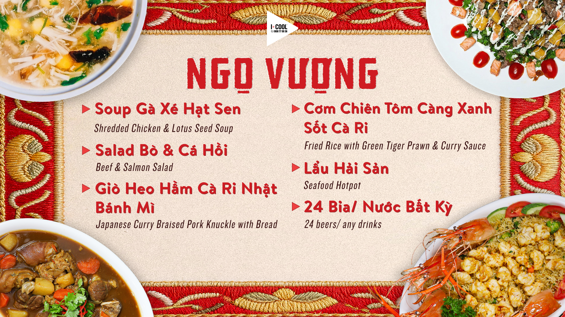 ICOOL TRÌNH LÀNG MENU SET TIỆC ‘NHẤT MÃ KHAI VẬN’
