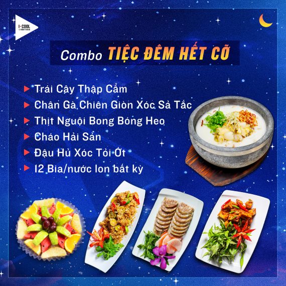 Ngoài các thức uống đóng chai, thì menu của ICOOL cũng rất sinh động với các món nước được pha chế từ hoa quả. Các thức uống này không chỉ có lợi cho sức khỏe mà còn giúp cho bạn phô diễn được giọng hát của mình nữa đấy! Giờ thì, thoải mái nhâm nhi và vui ca cùng đồng đội nhé!