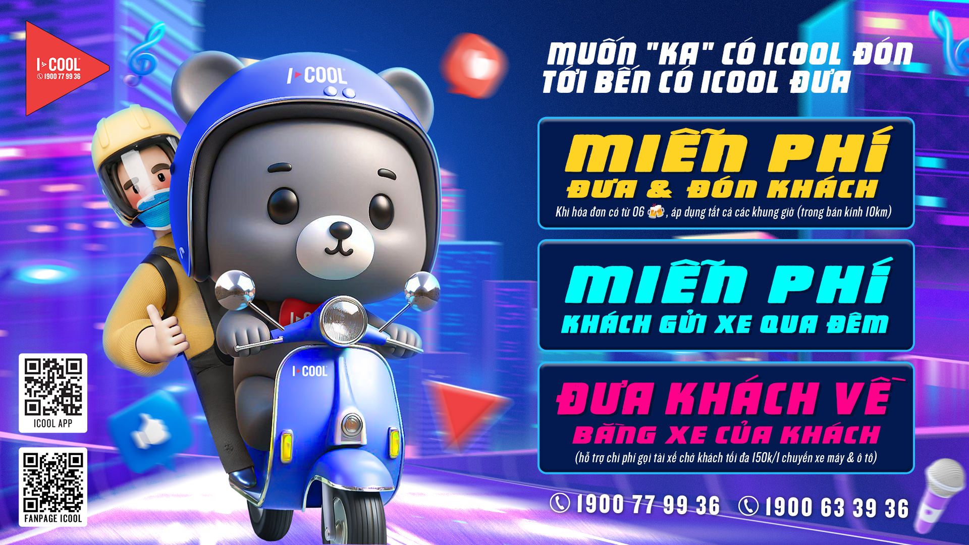 Với chương trình ĐƯA – ĐÓN miễn phí, ICOOL sẽ giúp bạn tận hưởng trải nghiệm ca hát trọn vẹn và trở về nhà an toàn tuyệt đối!